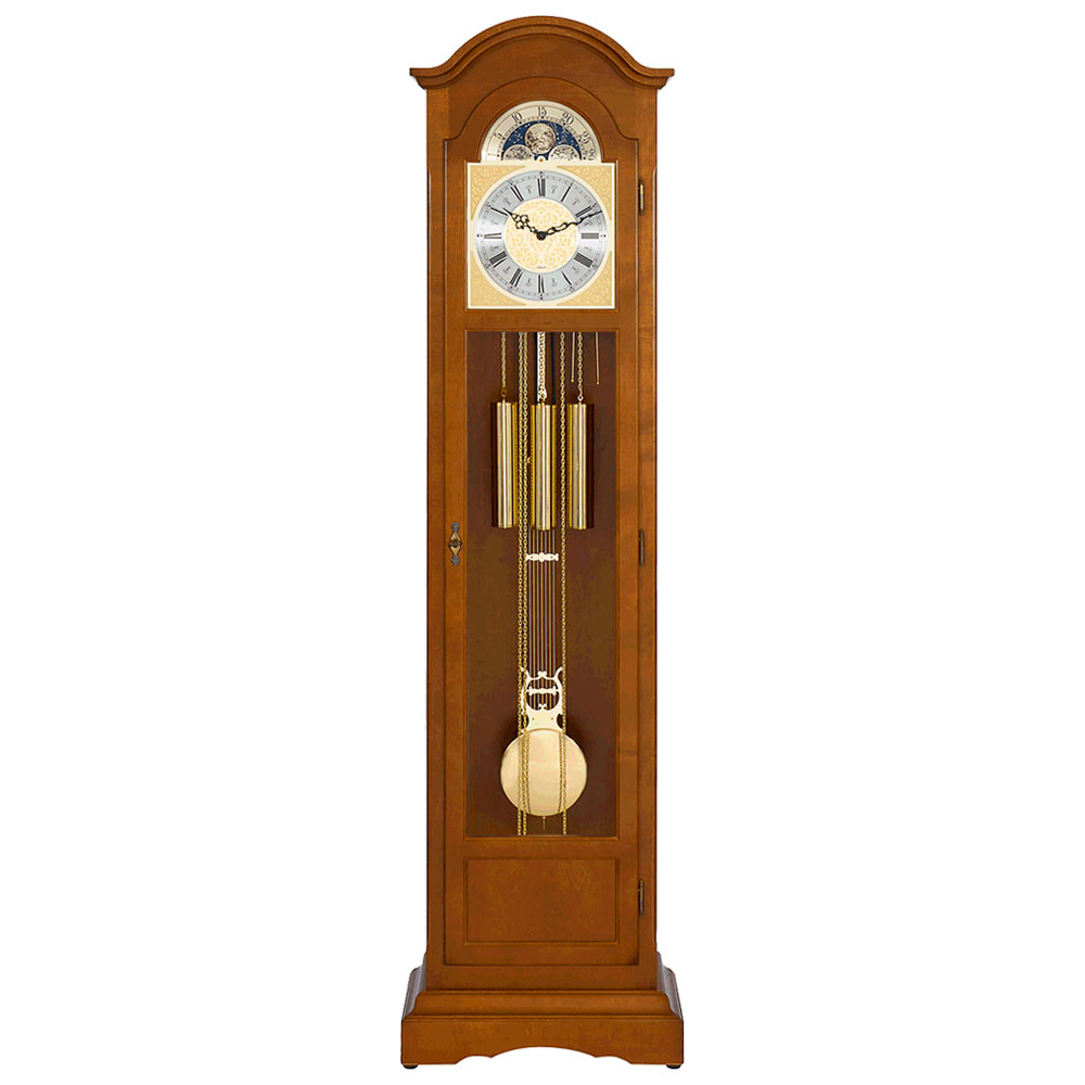 Напольные механические часы арт. 0451-61-148 (германия). Механические напольные часы Арт. 0451-61-148 (Германия) Механические напольные часы Арт. 0451-61-148 (Германия) имеют надежный немецкий механизм. Автоматическое отключение боя и мелодии на ночь, возможность отключения боя принудительно вручную в любой момент Римский циферблат. Над циферблатом расположен механизм, демонстрирующий фазы луны. Корпус - дерево (цвет вишня). Механизм механический с цепным подвесом гирь, восьмидневный завод. Мелодии каждые 15 минут Westminster, бой каждый час. Характеристики Арт. 0451-61-148 (Германия): Корпус: дерево (цвет вишня) Стекло: минеральное.Размер: 192х52х29 см Гарантия: 2 годаМелодии каждые 15 минут : Westminster Бой каждый час и проигрывание мелодии Вестминстер полностью.Завод (ход): 8 дней Размер, см : 192х52х29 Цвет : Вишня Материал : Дерево Механизм : Механический (Германия) Функции : Мелодия, Бой, Ручное и автоматическое отключение мелодии СКИДКИ : Индивидульные