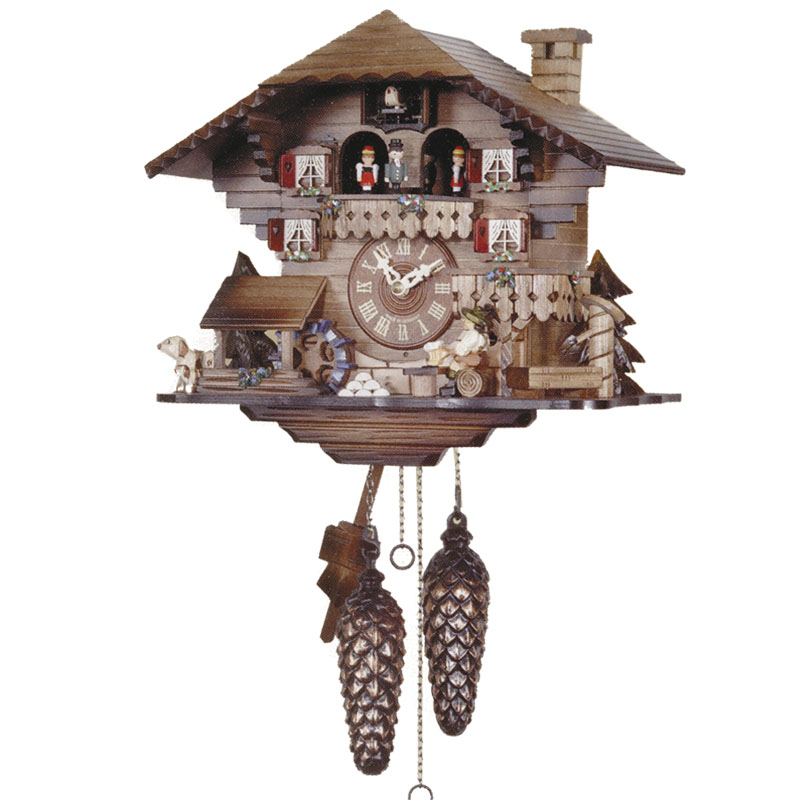 - Оригинальность этих настенных часов с кукушкой SARS подчеркивают вращающиеся при срабатывании кукушки фигурки- двигаются фигурки сверху, водяное колесо(слева) и мужик поднимает и опускают кружку пива.