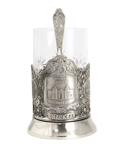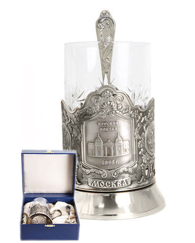 Подстаканник курский вокзал (штамп) никелированный в футляре