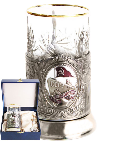 Подстаканник никел. почетному работнику морского флота ссср(черн.) в футл