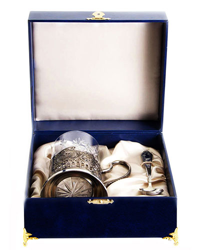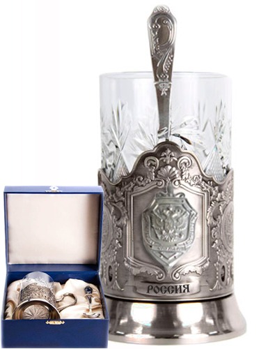 Подстаканник никел. с накладкой фсб (олово) в футляре