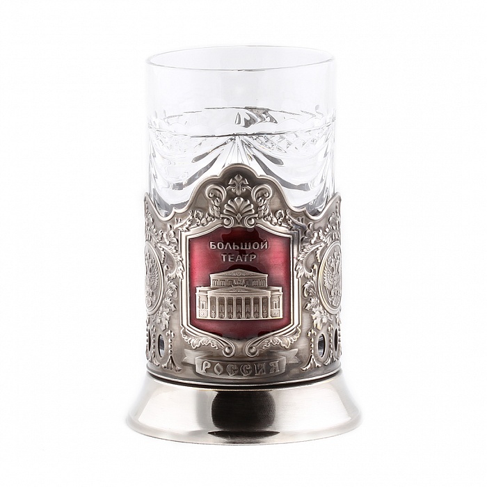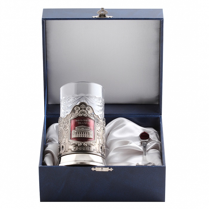 Подстаканник никелированный большой театр (штамп) эмаль в футляре