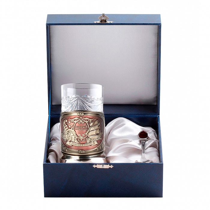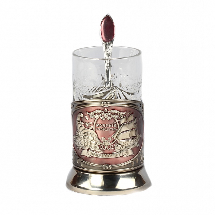 Подстаканник никелированный мудрый руководитель (холодная эмаль) в футляр