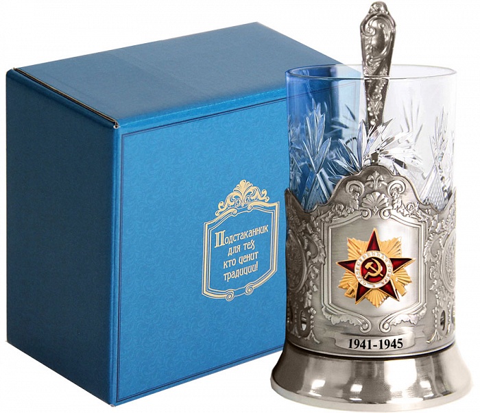 Набор для чая (3 предмета) орден победы 1941-1945 никел. карт. короб