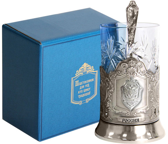 Набор для чая (3 предмета) с накладкой фсб (олово) никел. карт. короб