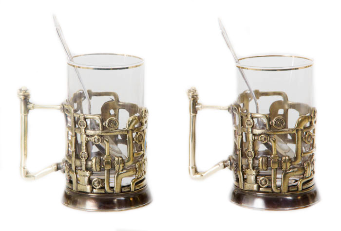 Детали: В наборе: два подстаканника, два стеклянных стакана, две ложки.