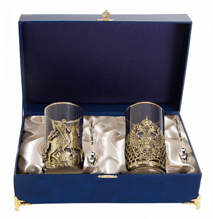 Чайная пара гербовый+георгий победоносец в шкатулке