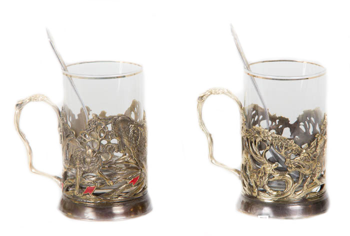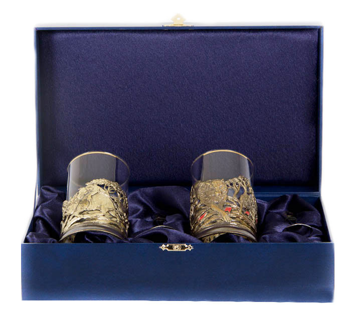Набор подстаканников охота на кабана+охота на волка в футляре