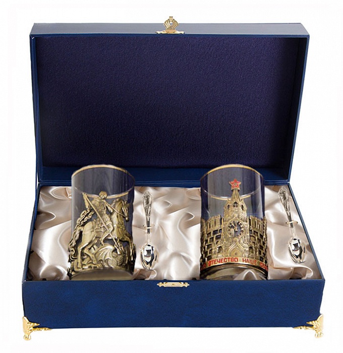 Чайная пара славься отечество+георгий победоносец в шкатулке
