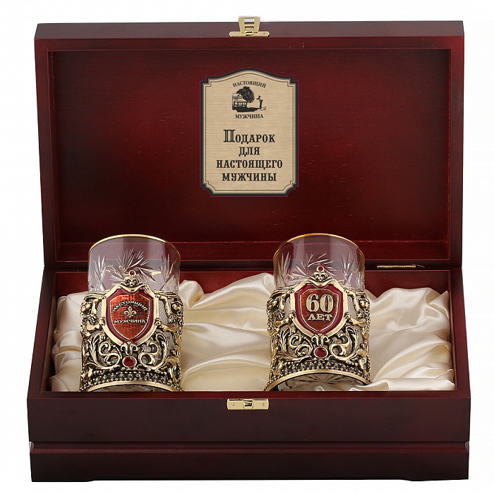Чайная пара юбилей 60 лет+настоящий мужчина в деревянном футляре