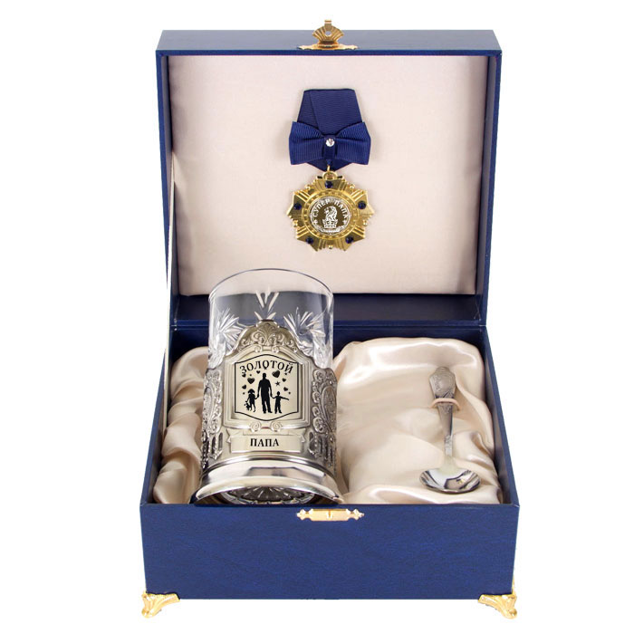 Подстаканник никел. с орденом золотой папа/ супер папа в шкатулке