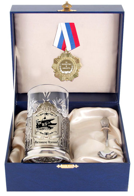 Подстаканник и орден в футляре мужчине на 23 февраля