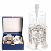 Подстаканник отечество долг честь посеребрение в футляре