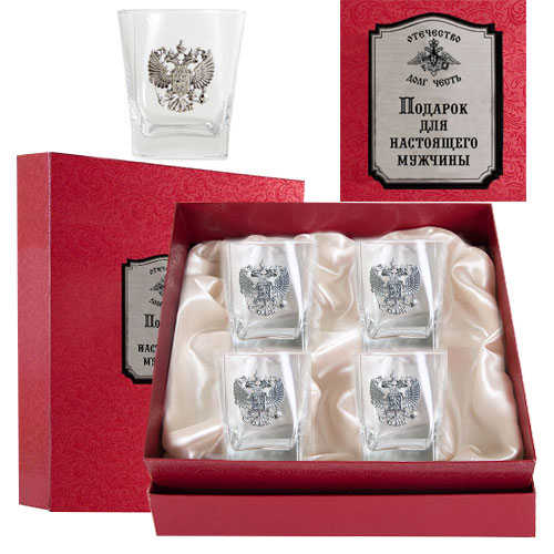 Набор бокалов для виски(герб) 4шт.отечество долг честь