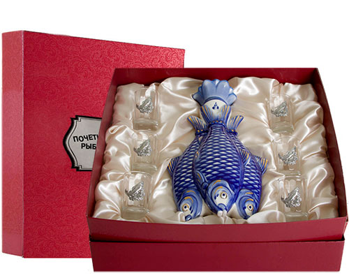 Набор штоф плотва малая гжель 6 рюмок рыбка к/к красный почетный рыбак
