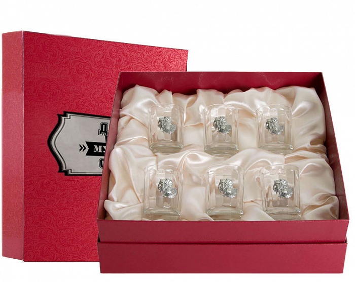 Набор 6 рюмок гран. с собакой к/к красный для реального мужского отдыха