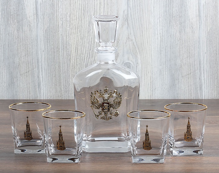 Набор штоф капитол герб +4 бокала для виски с золотой обводкой спасская б