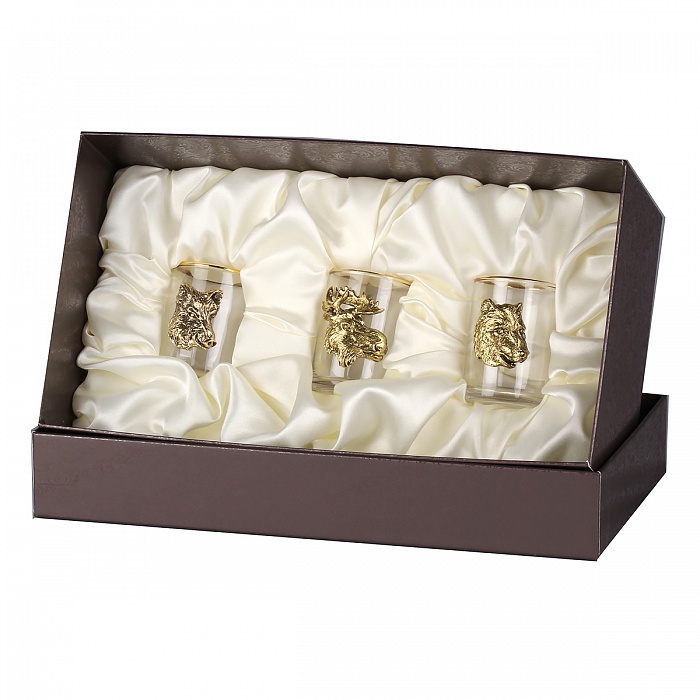 Набор из трех стопок с накладкой звери (латунь) в к/к с накладкой