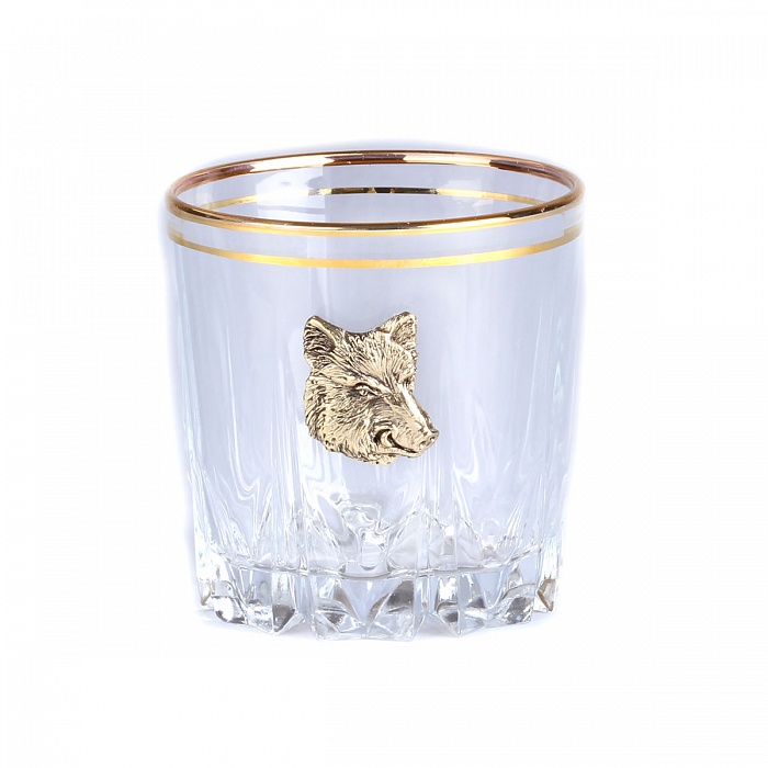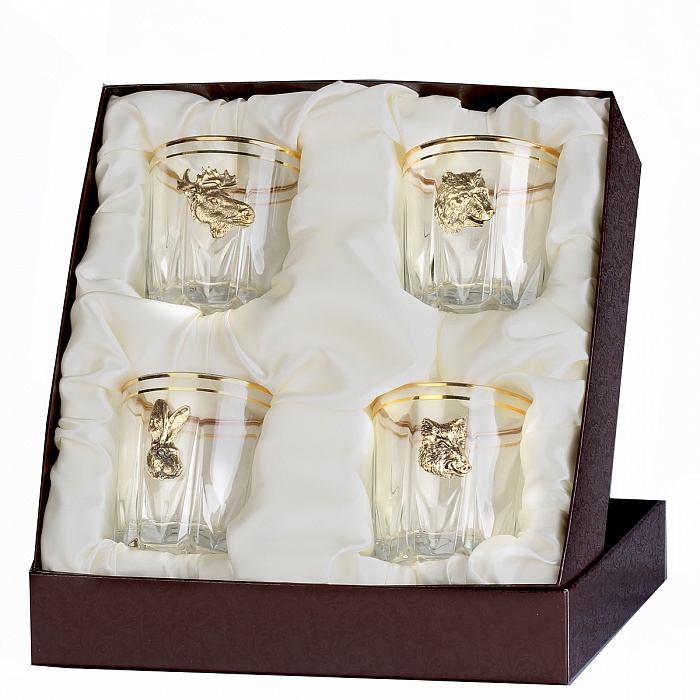 Набор бокалов для виски (4шт.) с накладкой звери (латунь) в футляре пейсл