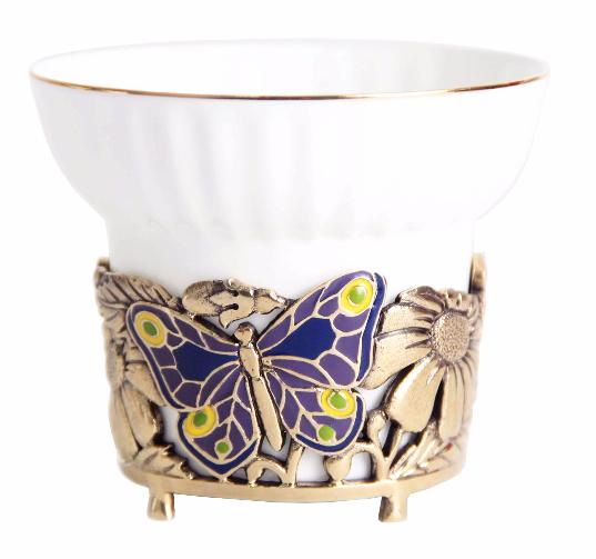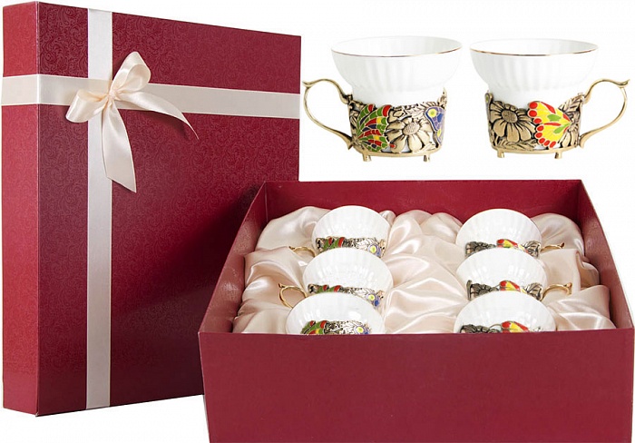 Набор из шести чашек бабочки и цветы картонный футляр. Код товара: 050205049 Основной материал: Чашка: императорский фарфор, художественное литье(латунь с цветной эмалью) Упаковка: декоративный картон, шелковый ложемент. Размер: Чашка: 7х10см Коробка:30,5х35х10см