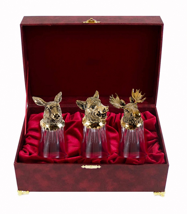 Набор стопок-перевертышей из трех штук заяц лось кабан в шкатулке