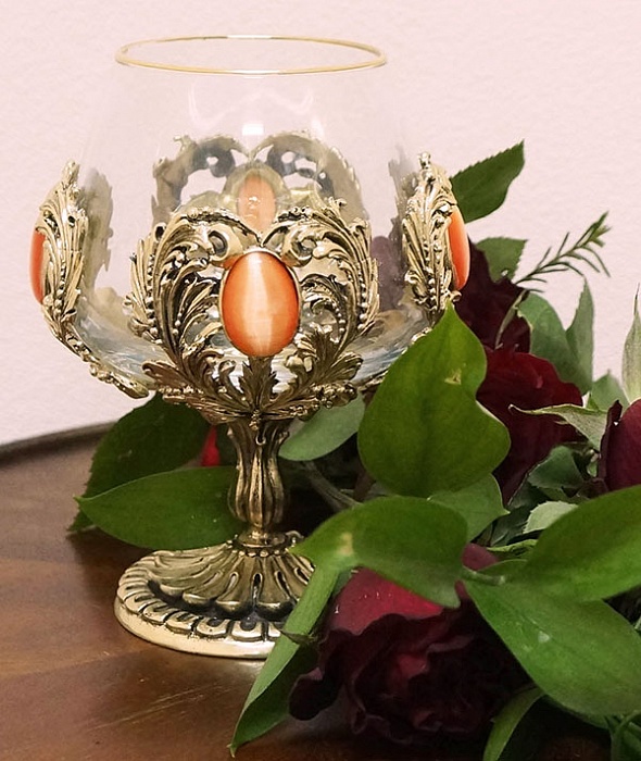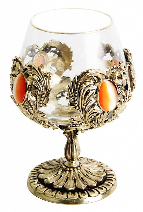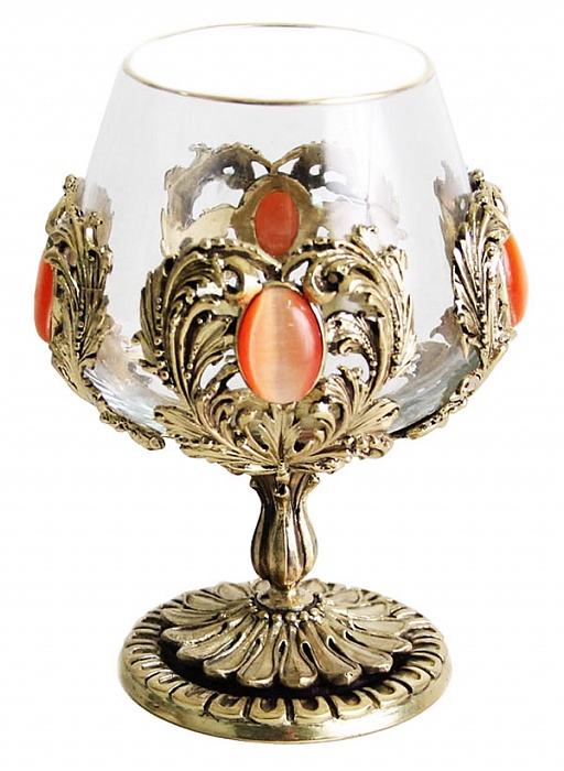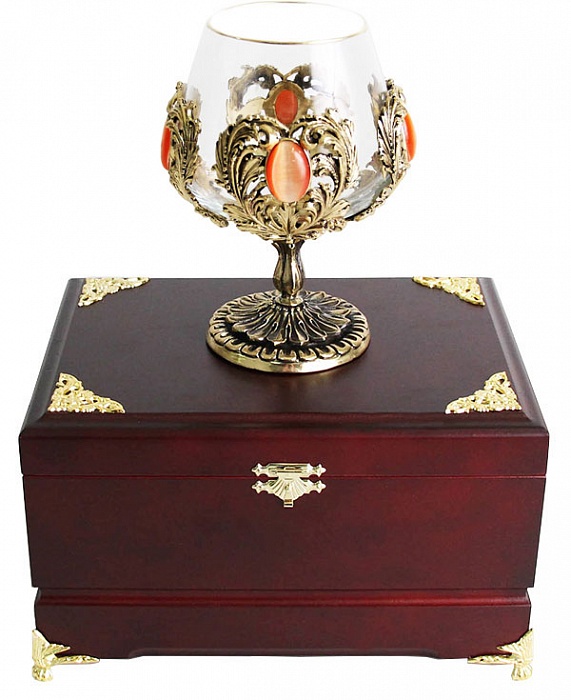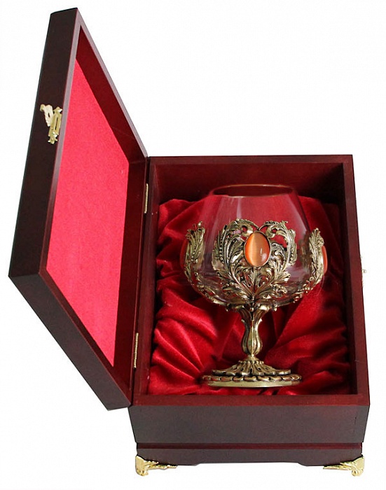 Бокал для коньяка с искусственным камнем (кошачий глаз) в деревянной шкату