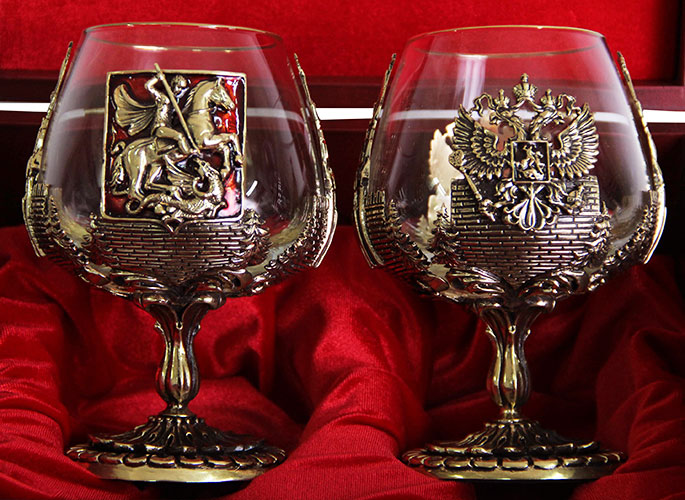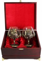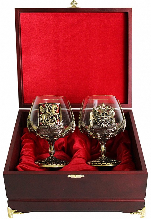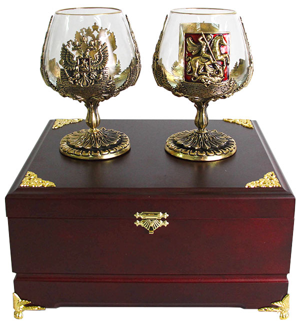 Набор из двух бокалов для коньяка москва и россия деревянная шкатулка