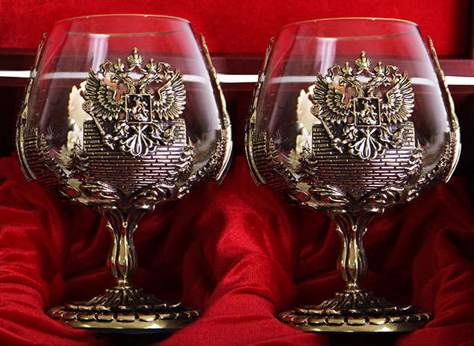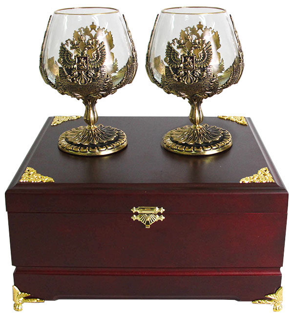 Набор из двух бокалов для коньяка россия деревянная шкатулка