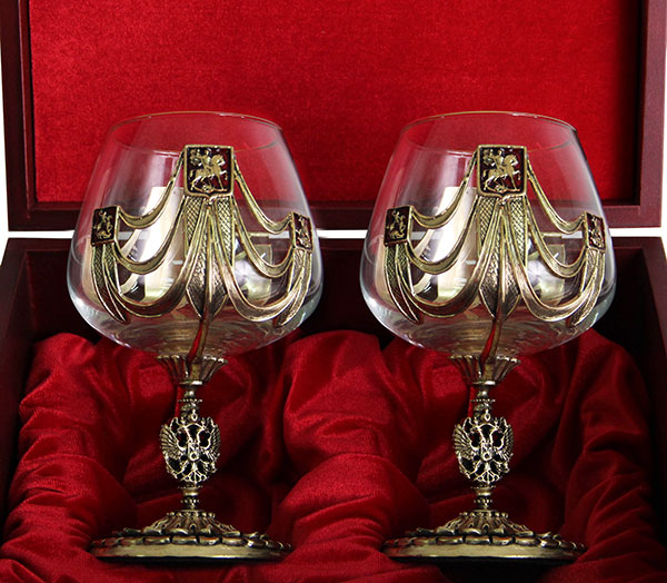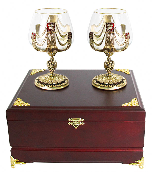 Набор из двух бокалов для коньяка державный деревянная шкатулка