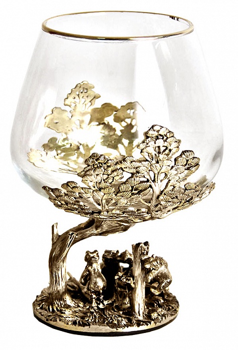Набор из двух бокалов для коньяка три медведя деревянная шкатулка
