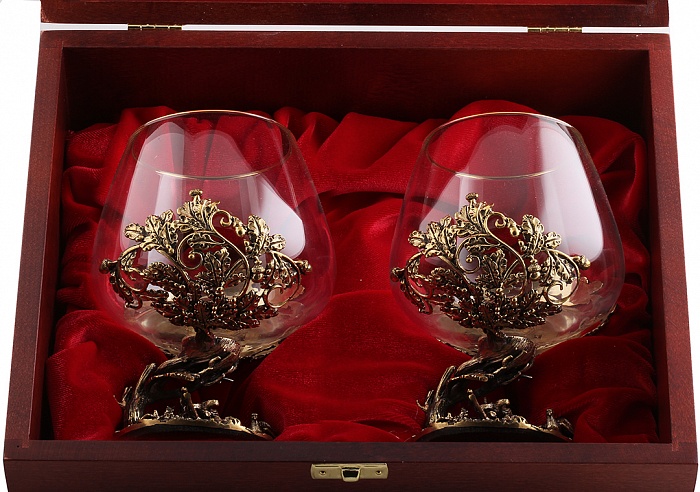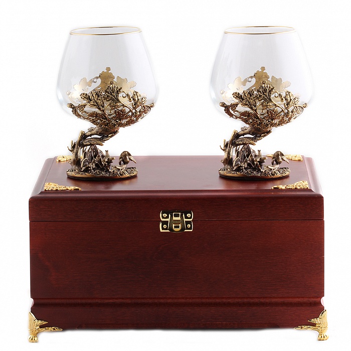Набор из двух бокалов для коньяка охота на тетерева деревянная шкатулка