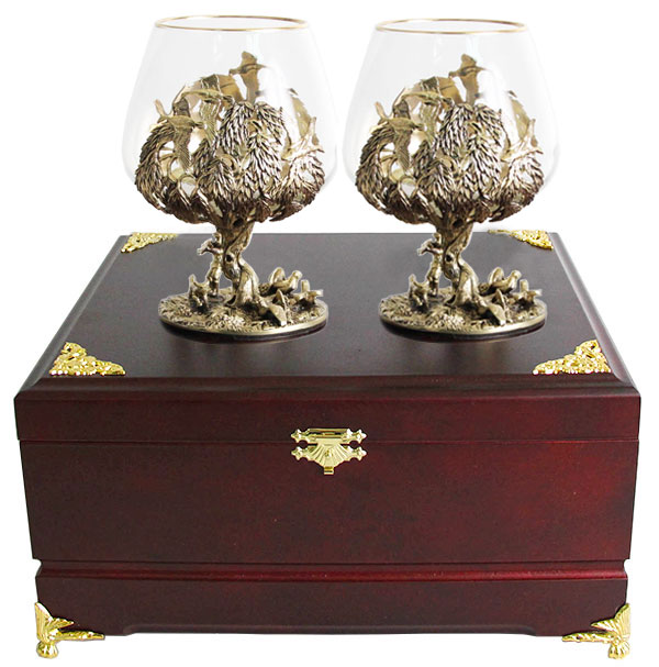 Набор из двух бокалов для коньяка охота на глухаря деревянная шкатулка