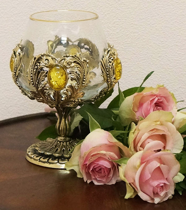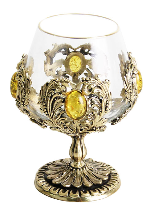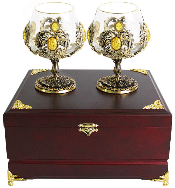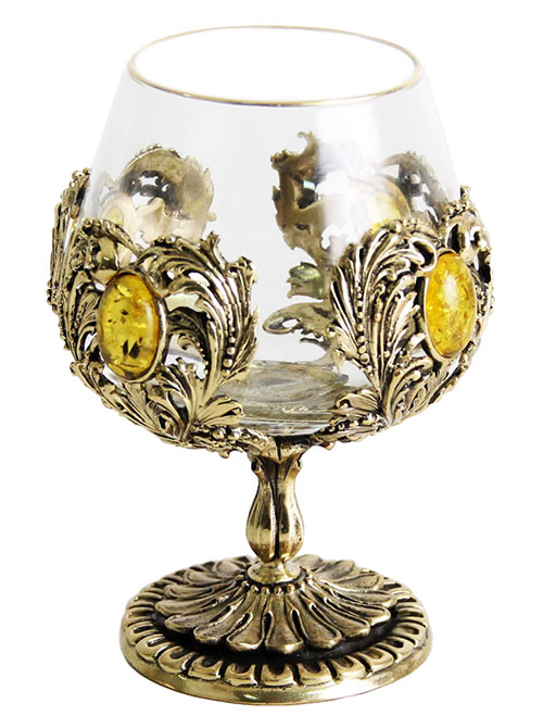 Набор из двух бокалов для коньяка с искусственным камнем (янтарь желтый)