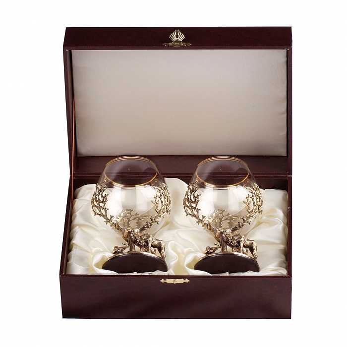Набор из двух бокалов для коньяка охота на лося (стандарт) в шкатулке бумв