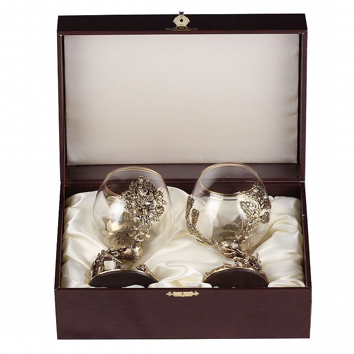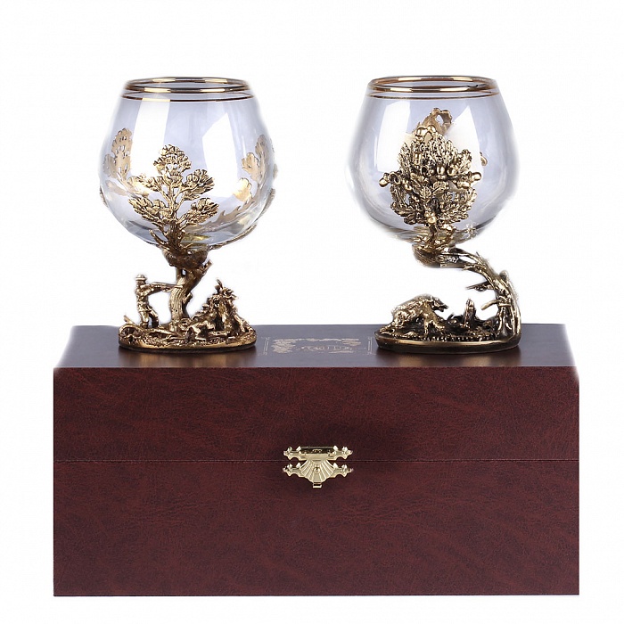Набор из двух бокалов для коньяка охота на медведя+охота на кабана (станда