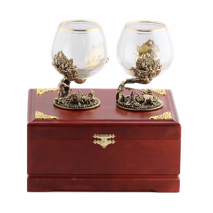 Набор из двух бокалов для коньяка охота на кабана (стандарт) в деревянной