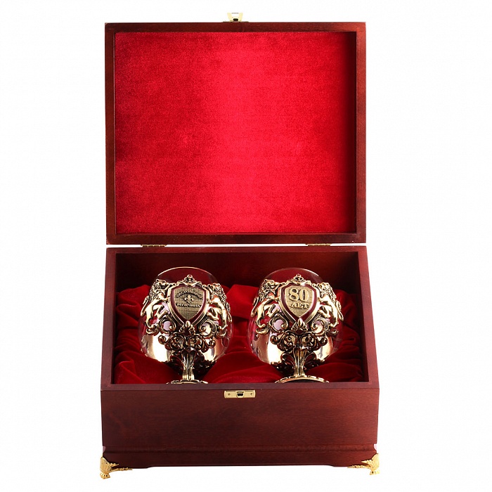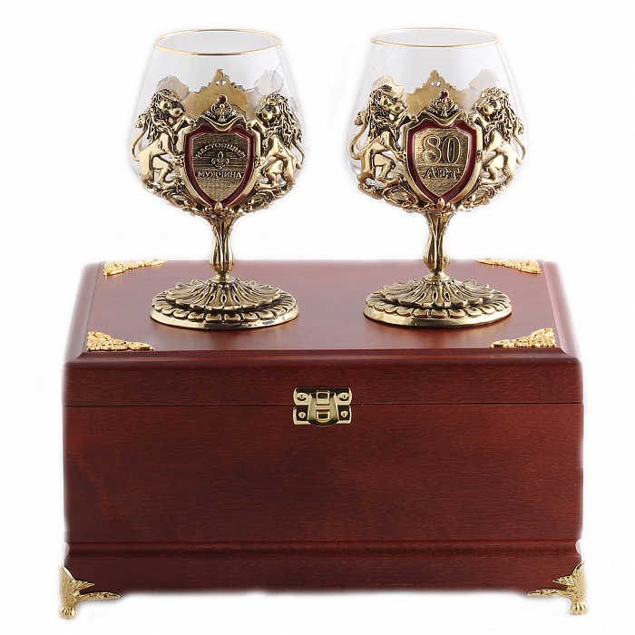 Набор из двух бокалов для коньяка юбилей 80 лет + настоящий мужчина деревя