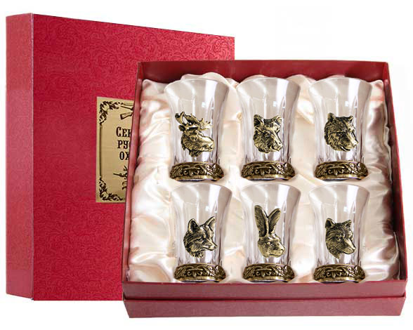 Набор из шести стопок для водки с лат. основанием звери в карт. футляре с