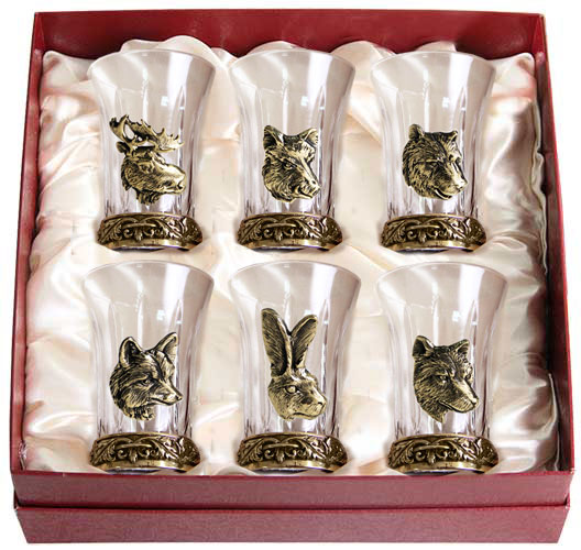 Набор из шести стопок для водки с лат. основанием звери в карт. футляре бе
