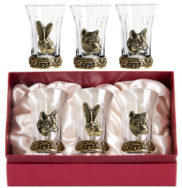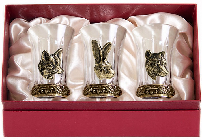 Набор стопок для водки 3шт.(хруст.с осн., накл.волк, лиса, заяц) кр. пейсл