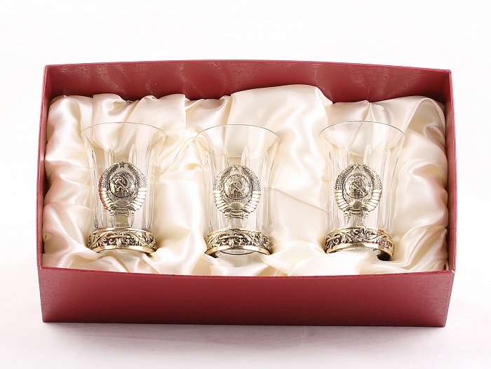 Набор стопок 3 шт с латунным основанием и накладкой герб ссср (латунь) в