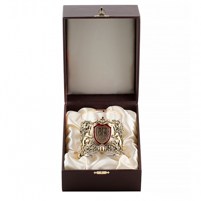 Бокал для виски юбилей 55 лет в коричневом футляре