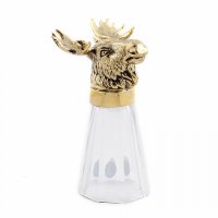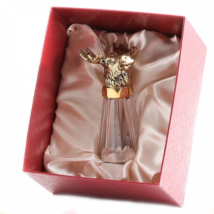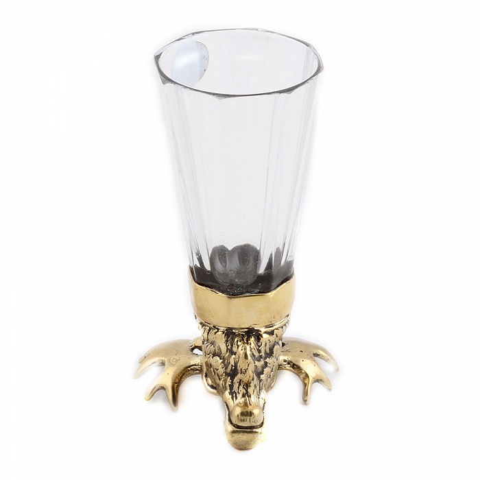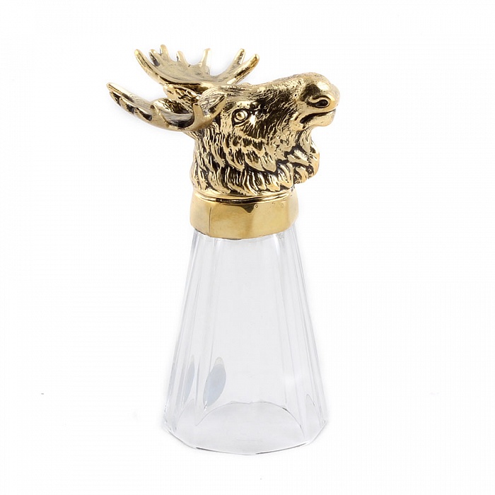 Ритон с головой животного лось в картонном футляре. Код товара: 050701008/1 Основной материал: Стопка: латунь, стекло Упаковка:картонный футляр Размер: Высота стопки 10см, объем 60мл Размер упаковки:17х14х10см