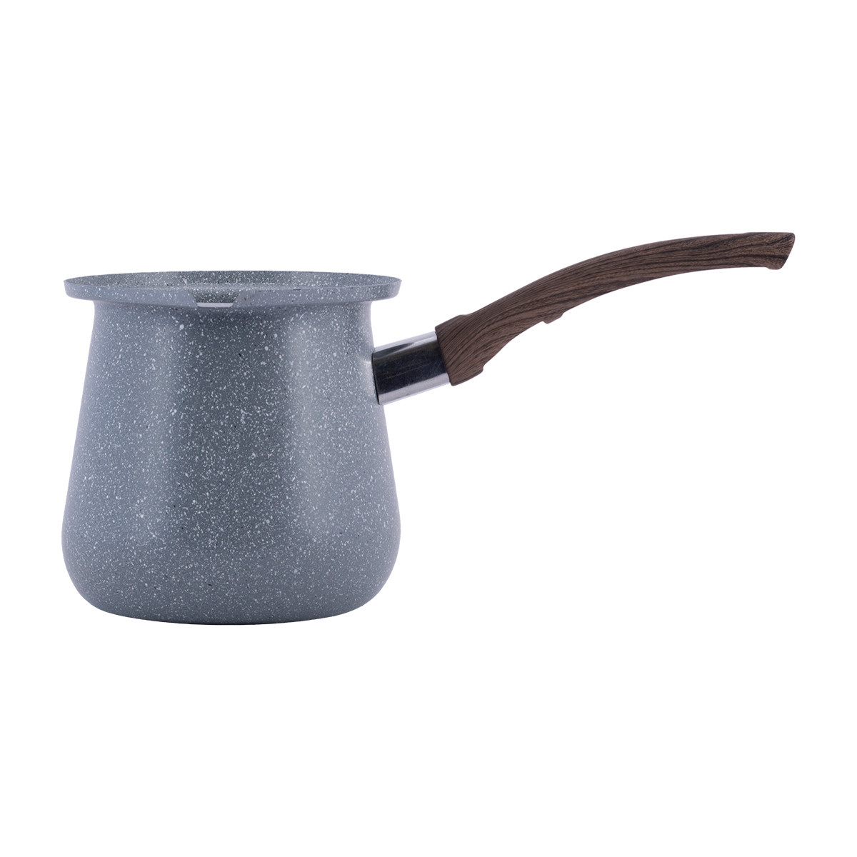 Турка для кофе 700 мл. из углеродистой стали kamille km 0563. Бренд: Kamille Описание: Турка для кофе Kamille создана для приготовления великолепного кофе по-восточному. Используя ее на любых кухонных плитах (за исключением индукционных) Вы сможете насладиться чашкой ароматного и вкусного кофе. Турка Kamille KM-0563, объем 700 мл. из углеродистой стали с антипригарным покрытием Материал: углеродистая сталь. Материал ручки: бакелит с рисунком дерево и покрытием soft-touch. Объем: 700 мл. Диаметр внутренний: 8,5 см. Высота 10,5 см. Длина ручки: 12 см. Цвет: серый мрамор. Тип плиты: электрическая, керамическая, газовая. Уход: После остывания турки рекомендуется сразу вымыть ее при помощи небольшого количества моющего средства, не использовать абразивные моющие средства. Рекомендуем: Кофеварки и турки Kamille Френчпрессы и заварочные чайники Мельницы для специй и кофемолки Столовые приборы Kamille