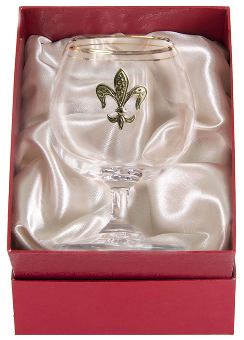 Бокал для коньяка с двойной золотой обводкой(накладка лилия латунь) кр.пей