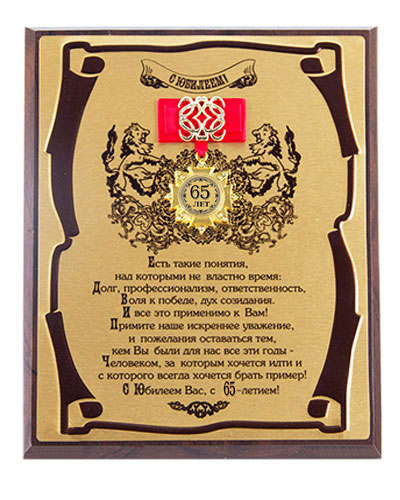 Панно с юбилеем 65лет! мудрый руководитель (сублимация, орден с лентой)