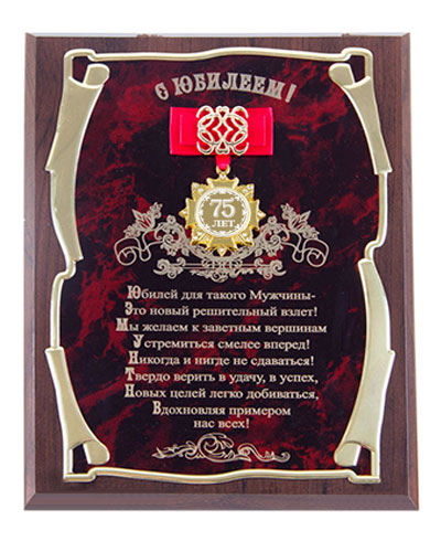 Панно с юбилеем 75лет!(муж.) (золотая серия, орден с лентой)