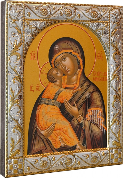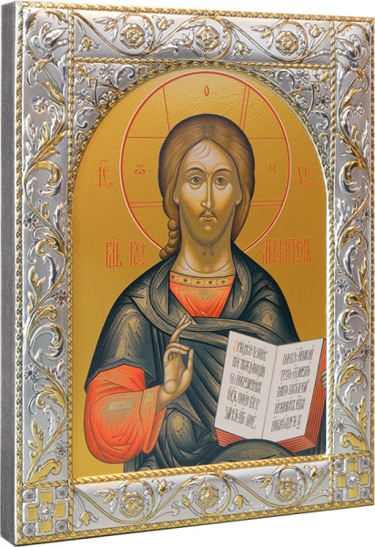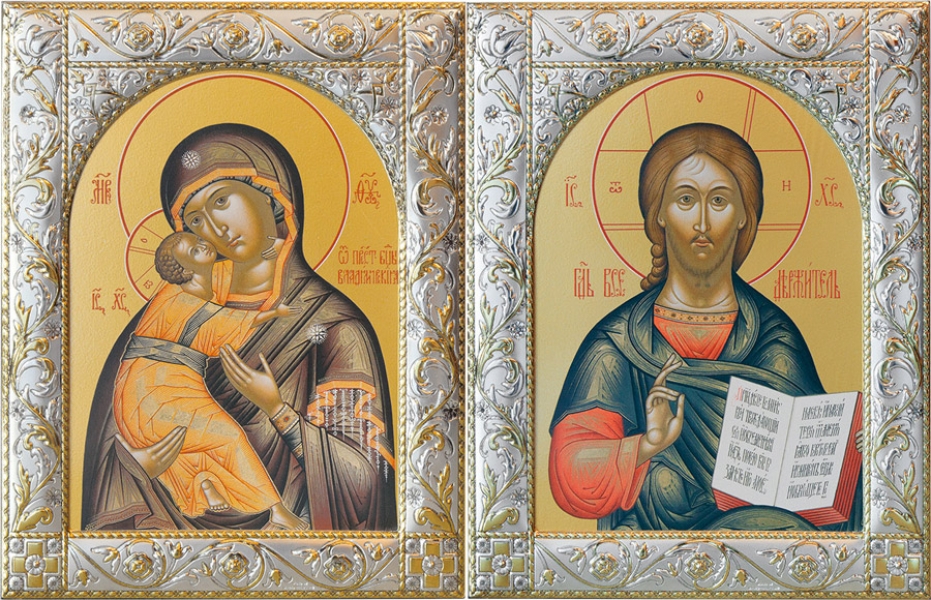 Венчальная пара икон господь вседержитель (арт.06105-55) и божия матерь вл. Рамка икон выполнена из металла, покрытого серебром. На окладе имеется штамп по европейскому стандарту. Каждое изделие изготавливается с использованием традиционной ручной обработки с использованием драгоценных металлов и высококачественных материалов, полученных по новейшим технологиям. MIRO SILVER- это новый металл, который придает покрытию поверхностную обработку, включающую в себя и большую стойкость к окисляющему слою чистого серебра 999,95%, по сравнению с обычными покрытиями. Иконография выполнена минеральными красками по золочению методом UV печати на деревянной доске или МДФ.