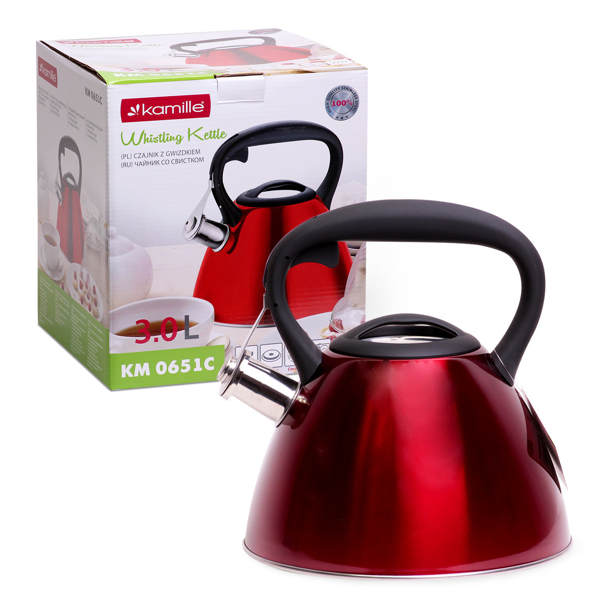 Чайник 3л из нержавеющей стали со свистком и черной бакелитовой ручкой (кр