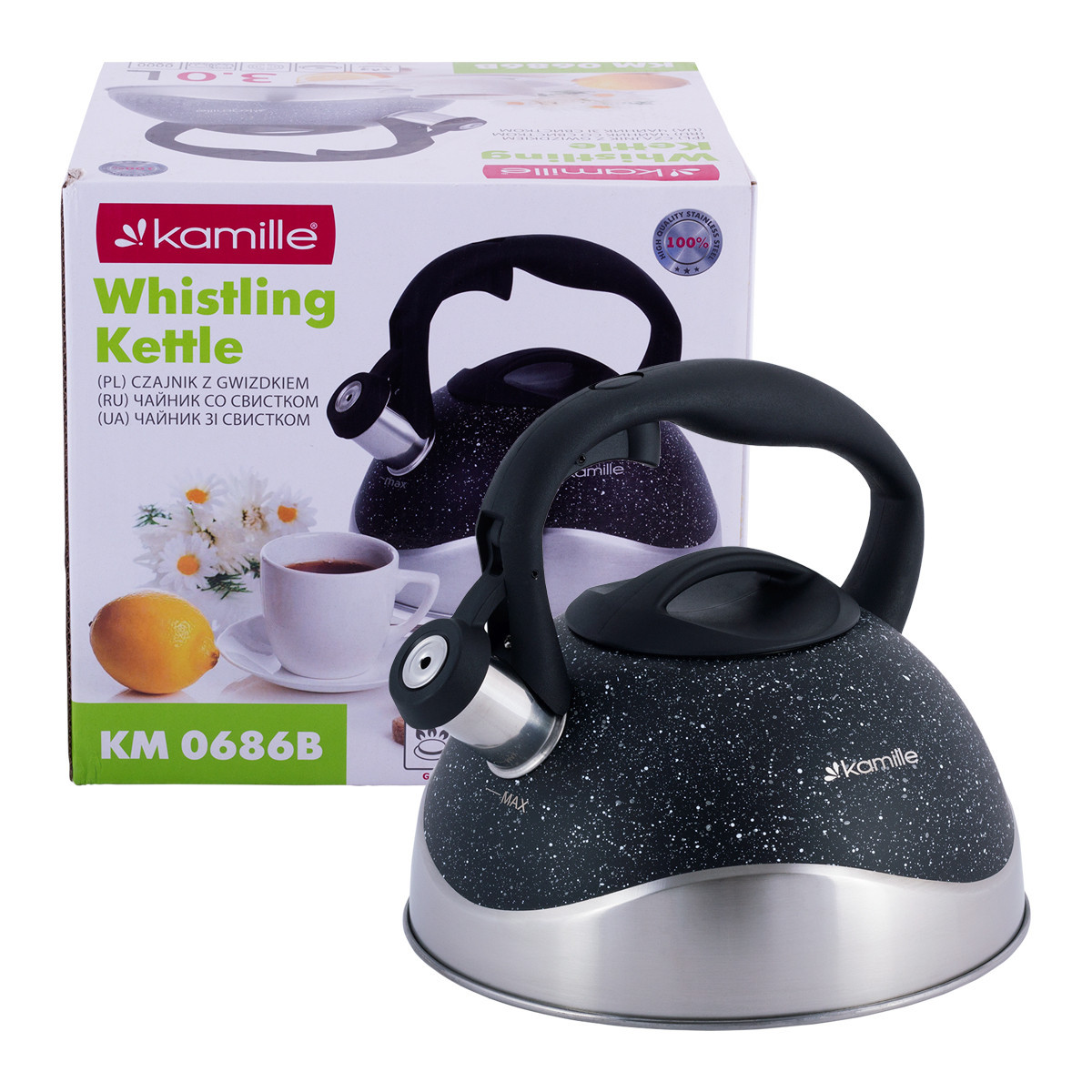 Чайник 2,8л из нержавеющей стали со свистком (серый, коричневый, черный)